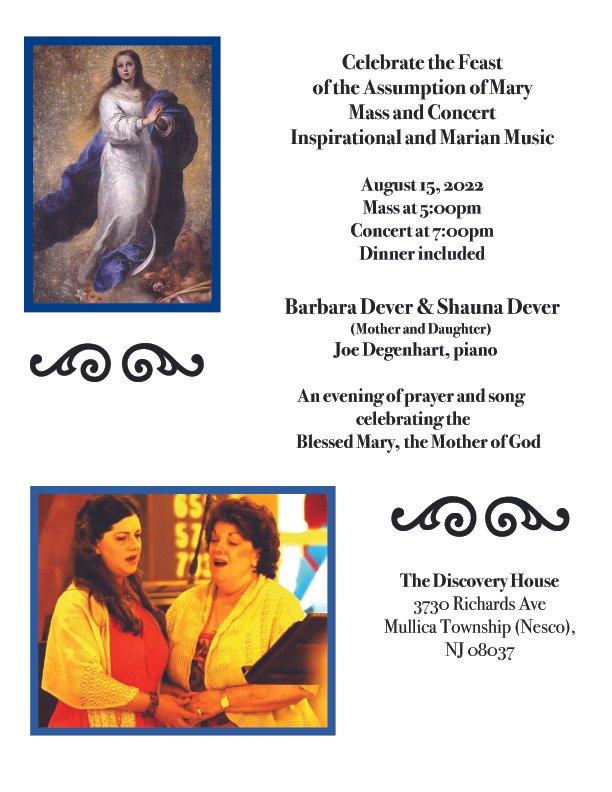Feast Of The Assumption Of Mary ~ Mass & Concert Monday Aug -15 5pm