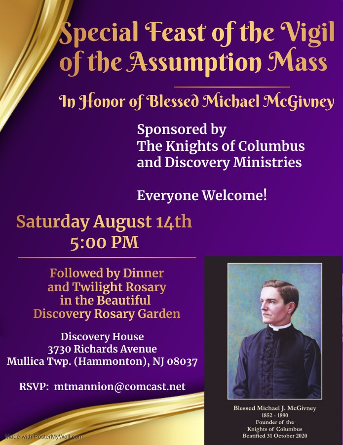 Mass in Honor of Blessed Michael McGivney Sat Aug 14th 5pm