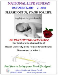 Pro-Life Prayer Chain at Rowan U, Sunday, Oct 6