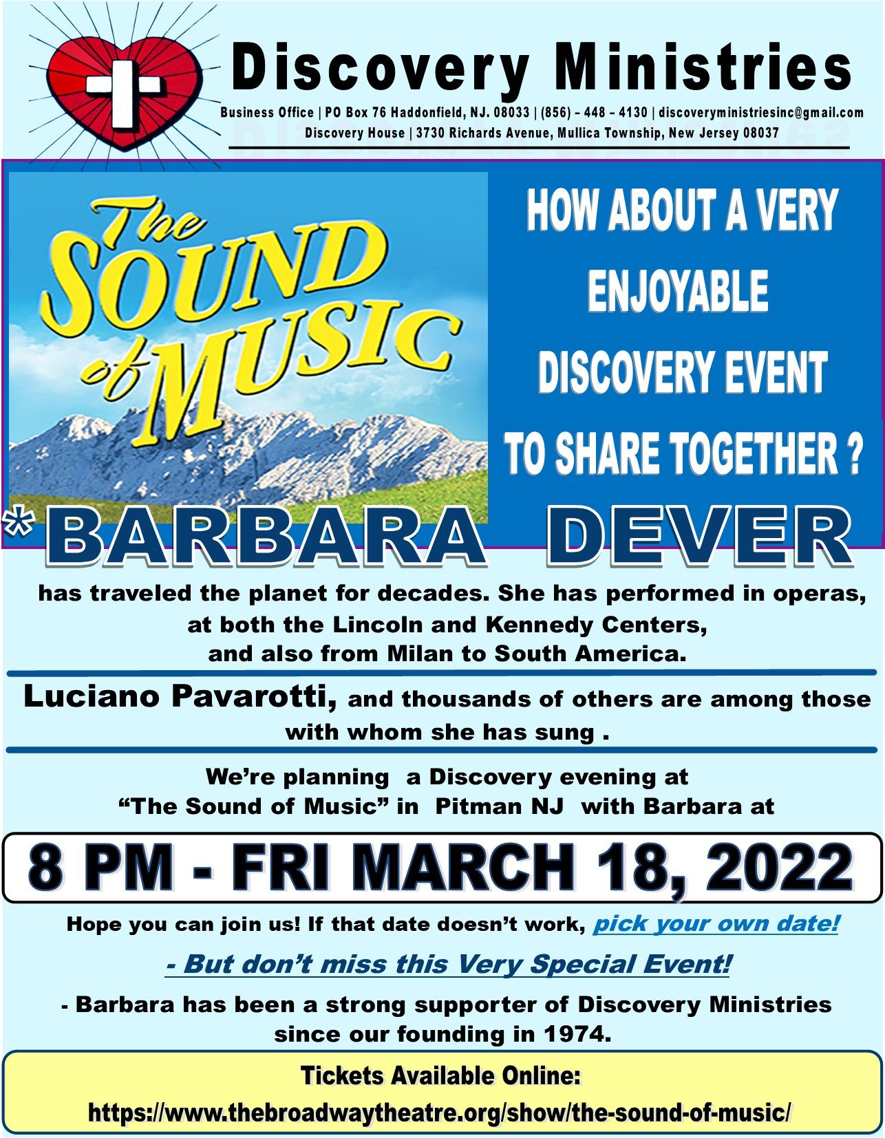 THE SOUND OF MUSIC – BARBARA DEVER – 8PM FRI MARCH 18, 2022