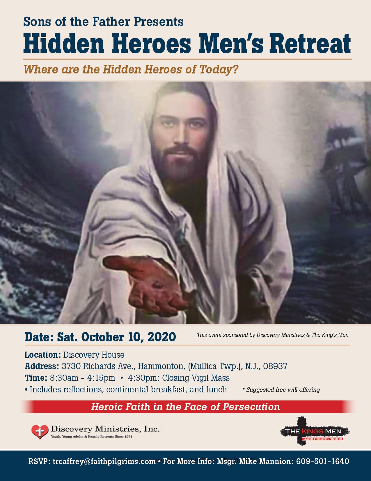 Includes reflections, continental breakfast, and lunch. RSVP: trcaffrey@faithpilgrims.com - For More Info: Msgr. Mike Mannion: 609-501-1640